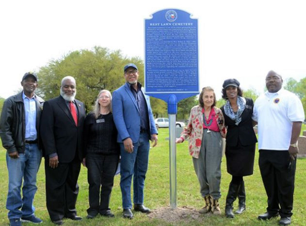 Rest Lawn’s earliest known burial was in 1943. Notable burials include several veterans of World War I, World War II, and Korea, well as Austin County, Texas native Weldon Bonner (March 22, 1932 – June 29, 1978), aka “Juke Boy Bonner,” an African-American blues singer and musician. Several volunteer groups have cleaned Rest Lawn for years. Nonprofits Second Chance Outreach, Inc. and Omega Psi Phi’s Iota Iota Iota Chapter began maintaining the cemetery in 2012 and continue to preserve and commemorate the cultural heritage and history of the cemetery.